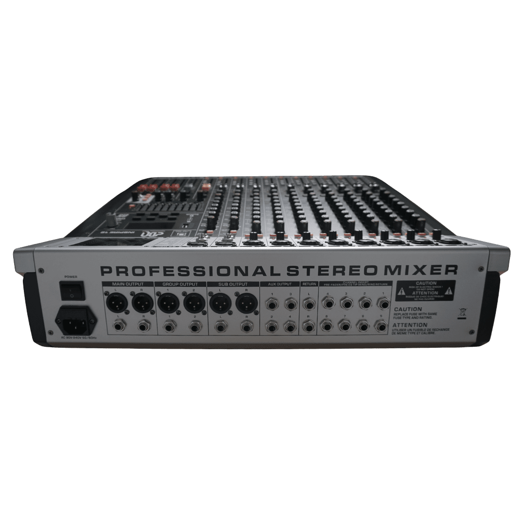 Menghadirkan 8 mono + 2 stereo input dengan fitur lengkap seperti phantom power, EQ 4-band, compressor, dan 4 AUX send. Didukung 99DSP effects, 9-segmen EQ main output, serta fader 100mm. Cocok untuk band, live performance dan kebutuhan audio profesional skala menengah.