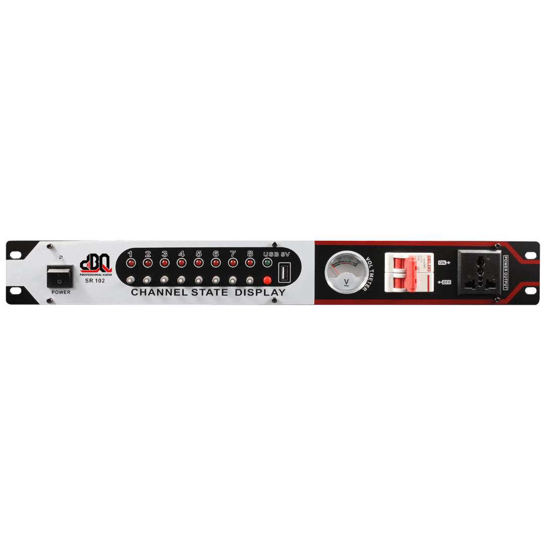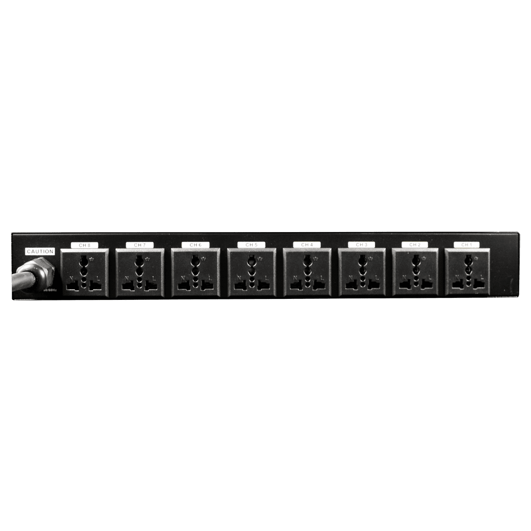 Power sequencer 8-channel dengan display voltase, delay per channel 1 detik, output 220V dan USB 5V. Kapasitas arus hingga 30A dan body metal kuat. Ideal untuk melindungi peralatan audio dari lonjakan listrik.
